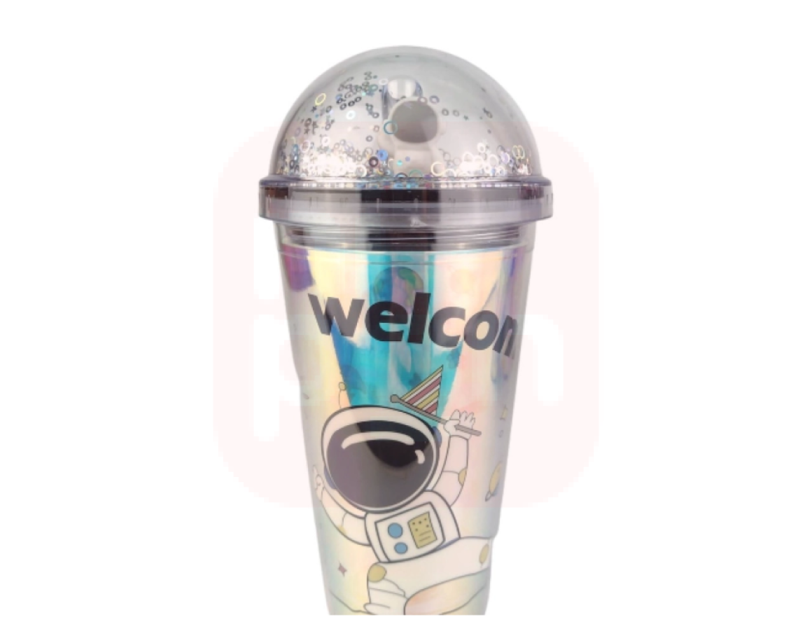 Copo Com Led Plástico E Canudo Personagem Astronauta 450Ml