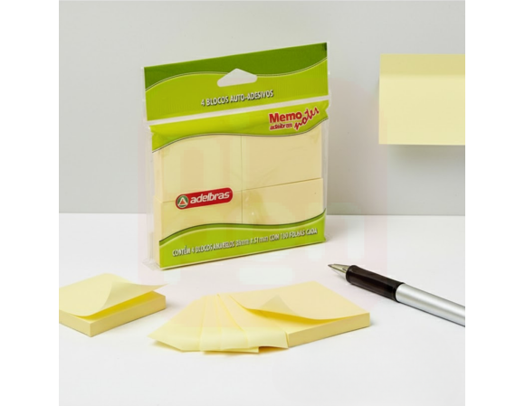 Post It 38x51 Amarelo 100 folhas 4 Blocos - Adelbras