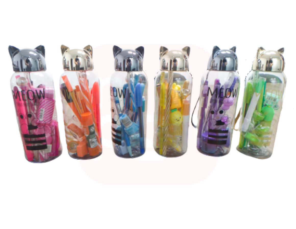 Kit Presenteável Monocromático com Estojo Garrafa Gato plástico tampa na cor dourada