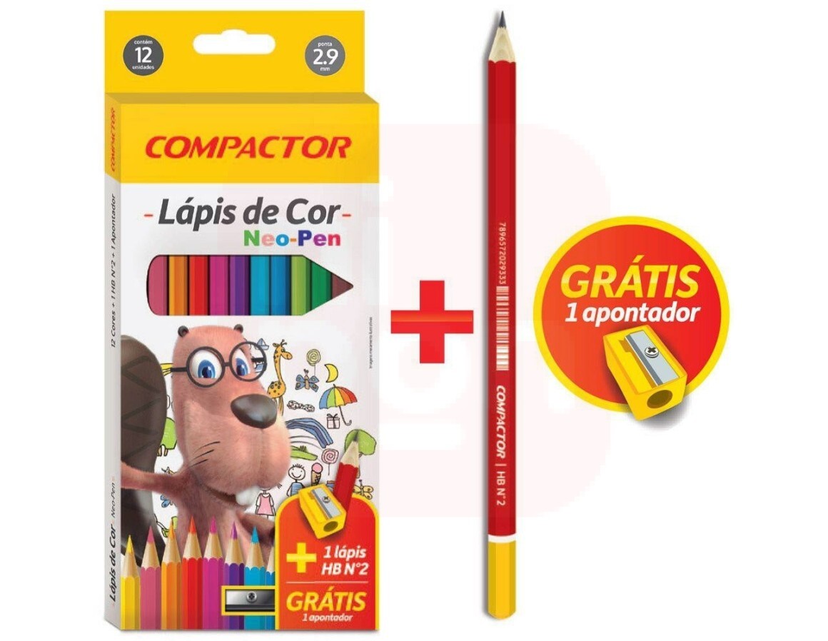Lápis de Cor 12 Cores + Apontador Neo-Pen - Compactor